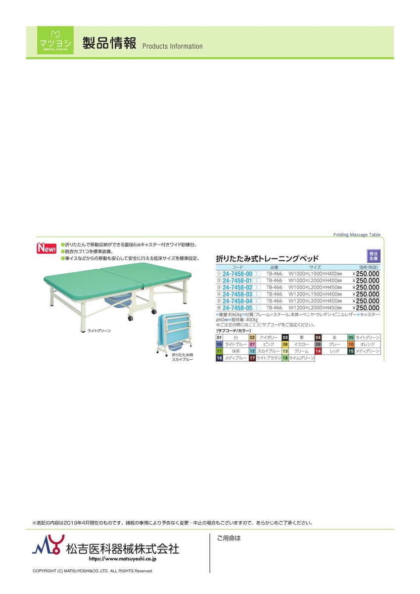 ★ポイント最大16倍★【送料無料】-折りたたみ式トレーニングベッド TB-466(100X200X45CM) 品番 my24-7458-0205 1入り-【MY医科器機】
