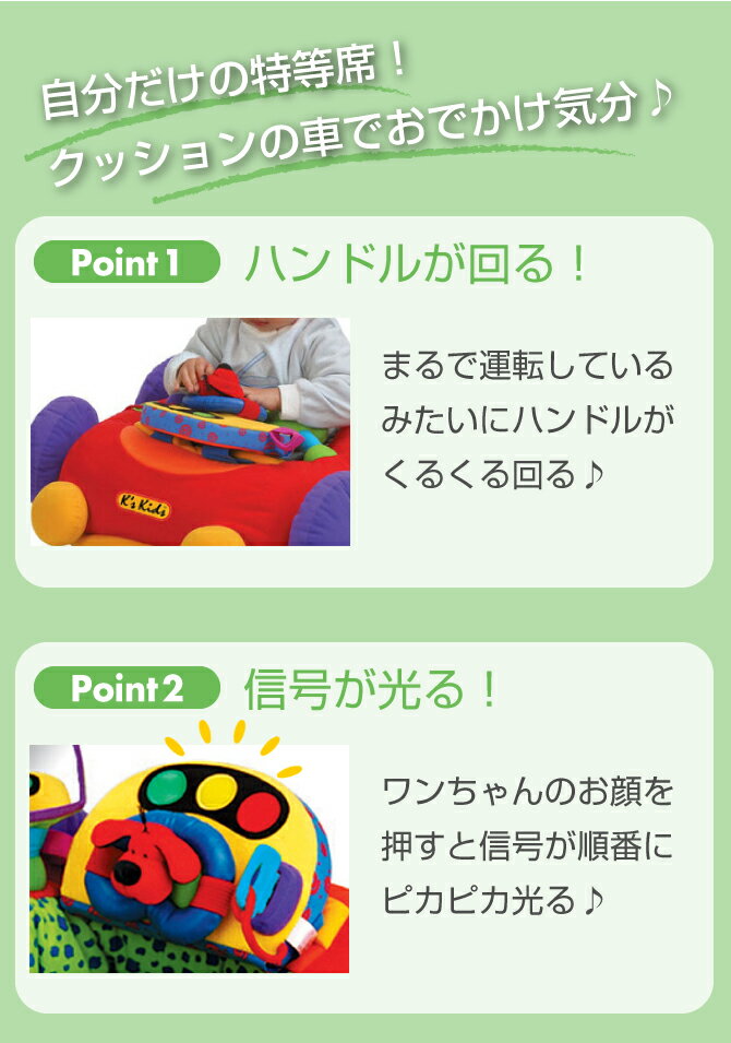 【全商品ポイント5倍】ベビー おもちゃ クッション 車 くるま 乗物 乗り物 ぬいぐるみ 知育玩具 赤ちゃん お座り 補助 ハンドル 音楽 ベビーカー 1歳 2歳 6ケ月〜 プレゼント 誕生日 クリスマス ddw10